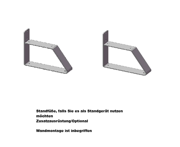 Optionales Zubehör wie Standfüsse zur Montage als Standgerät, oder Funkfernbedienung finden Sie weiter unten.